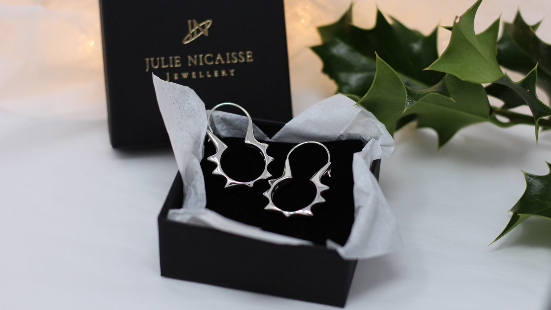 I bought the “Lightning” earrings for my girlfriend and she loves them! Julie offered to replace the original screw fittings, with some standard ear wire as my girlfriend preferred that option. The delivery was fast and arrived in a beautiful box. I am really happy with my purchase and I would recommend Julie Nicaisse Jewellery to anyone in search of beautiful and unique handcrafted jewellery.